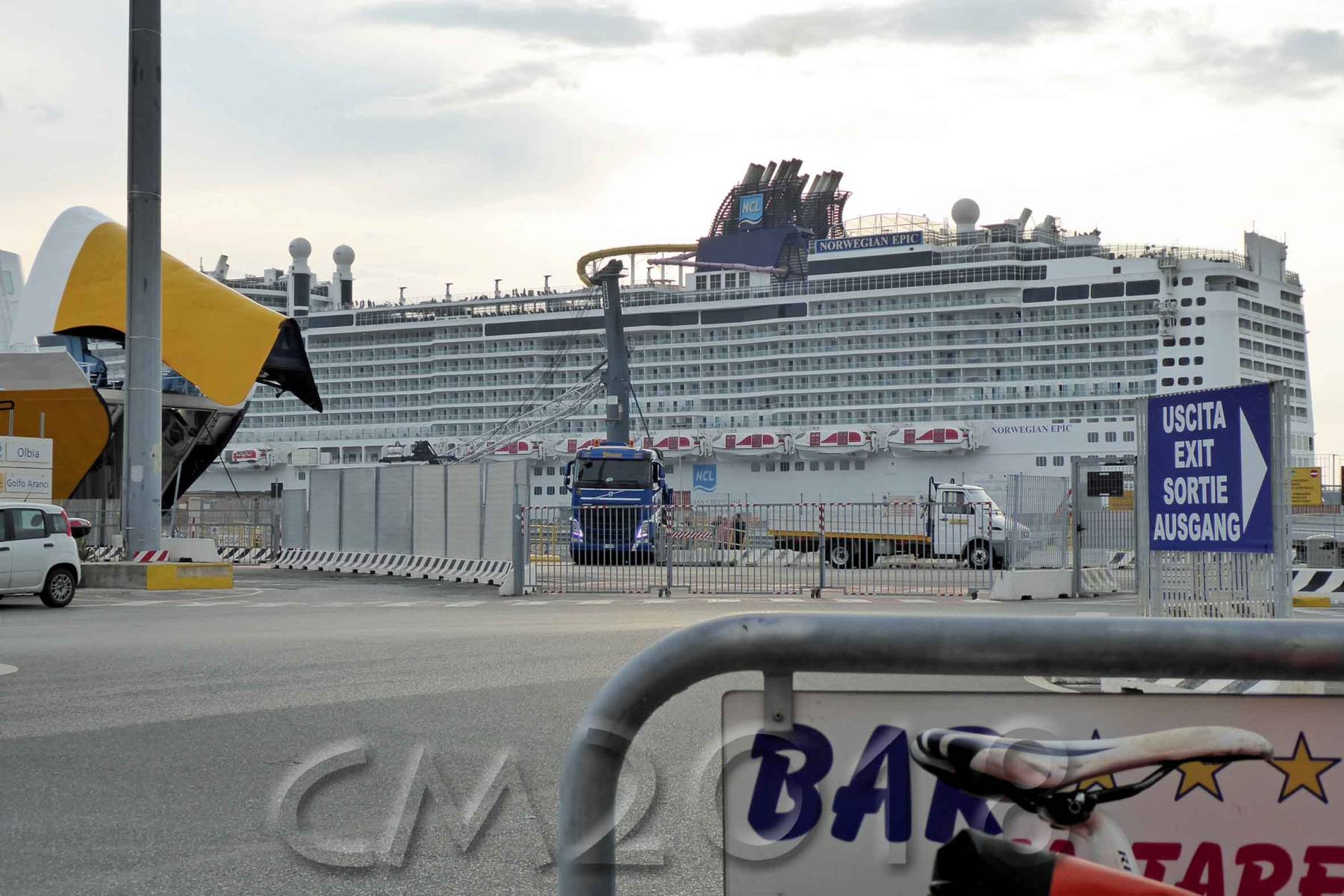 Da wir mal wieder die einzigen Radreisenden an Bord der Moby Line waren ging unsere Einschiffung äußerst schnell. Wir wurden an den wartenden Autos vorbeigelotst, und erhielten ein nettes Plätzchen für die Räder an der Seite im Schiffsbauch. So kann man als einer der Ersten an Deck in aller Ruhe die Einschiffung der langen Autoschlange beobachten. Und da die Räder ganz in der Nähe des Ausgangs platziert wurden, waren wir in Bastia auch die ersten Passagiere, die von Bord gingen! Das sind die Vorteile wenn man ohne Auto reist 😉